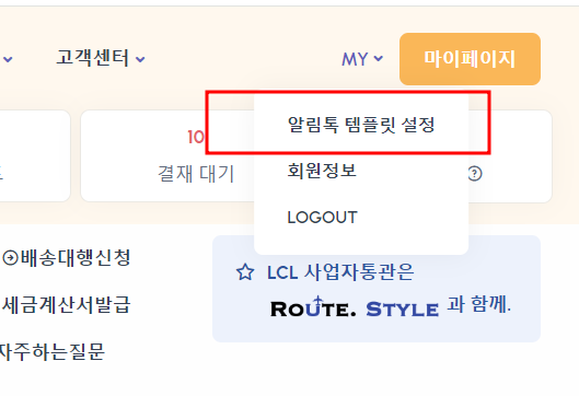 [MY - 알림톡 템플릿 설정] 메뉴를 클릭해서 알림톡 템플릿 설정화면으로 이동합니다.