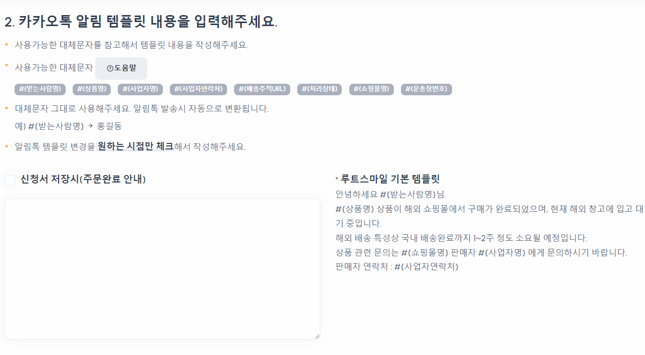 - 사용가능한 대체문자를 참고해서 템플릿 내용을 작성해주세요.