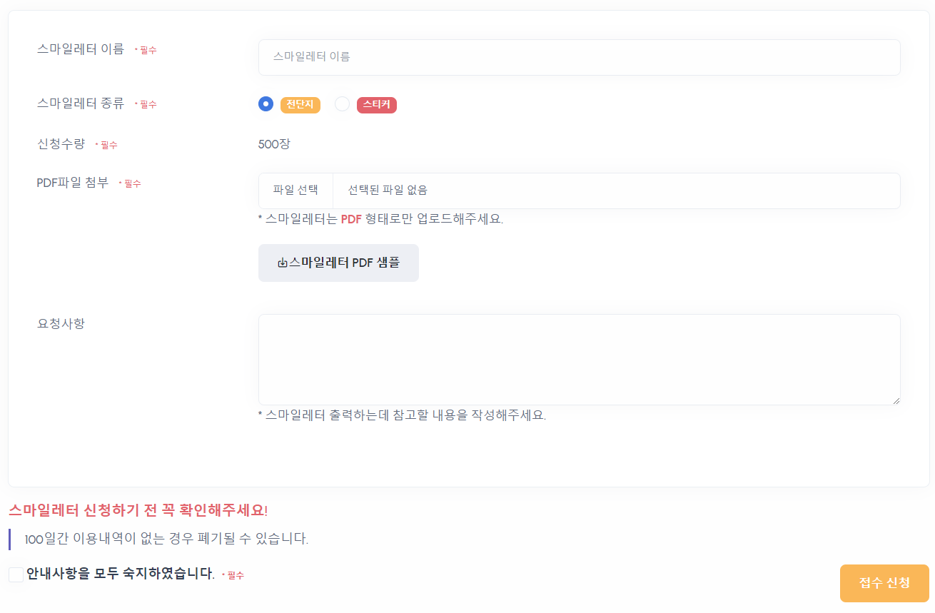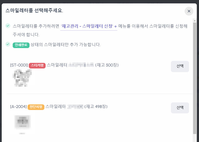 배송대행 신청시 인쇄완료 상태의 스마일레터를 추가해주세요.